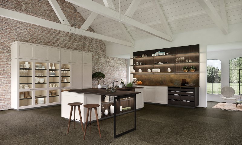 La cucina FILO’ rivista in chiave contemporanea l’archetipo della cucina tradizionale. il nome stesso evoca antichi momenti di vita famigliare, in cui si chiacchierava e si raccontavano ai bambini storie e fiabe intorno al fuoco, le sere di inverno.